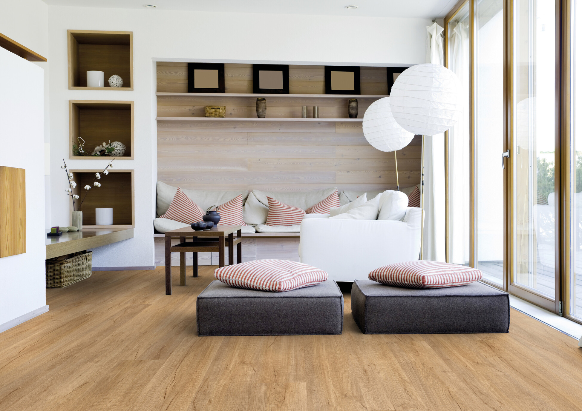 Designbeläge sind in der Regel als Fliesen oder Dielen erhältlich und können schwimmend verlegt oder vollflächig verklebt werden. Schwimmend verlegte Beläge bieten sogar auf vorhandenen Böden den Vorteil einer einfachen und schnellen Installation, während vollflächig verklebter Designbelag eine feste und stabile Verbindung mit dem Unterboden bildet. Bei Klick-Varianten werden die einzelnen Dielen oder Fliesen ineinander verriegelt, um eine stabile und nahtlose Oberfläche zu schaffen, was wiederum eine einfache Entfernung und Neuanordnung des Bodenbelags ermöglicht.