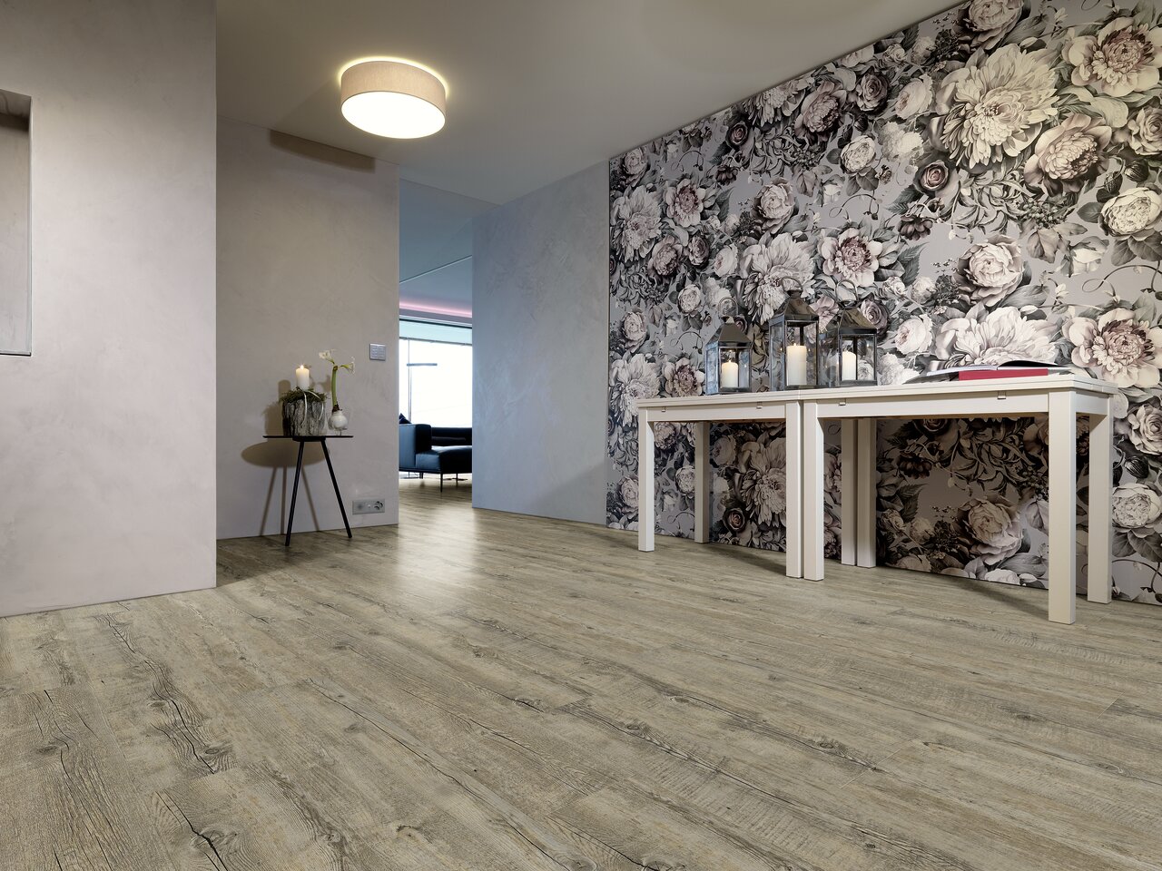 Designbelag in Holzoptik mit einer matten Oberfläche und einer erhöhten Rutschhemmstufe R10 sowie einer 4-seitigen Microfase und der bewährten droplank basic click Technologie. Diese Variante überzeugt außerdem durch eine wasserfeste, dimensionsstabile und temperaturbeständige Trägerplatte inklusive einer rückseitigen Trittschallkaschierung, die eine sichere schwimmende Verlegung garantiert. „Schwimmend verlegen“ bedeutet, dass einzelne Design-Dielen nicht mit dem Untergrund verbunden werden. Sie werden meist via Klicksysteme zusammengesteckt und ohne Befestigung auf dem Boden verlegt. Dieser Designbelag ist in 11 verschiedenen Eiche Dekoren erhältlich.